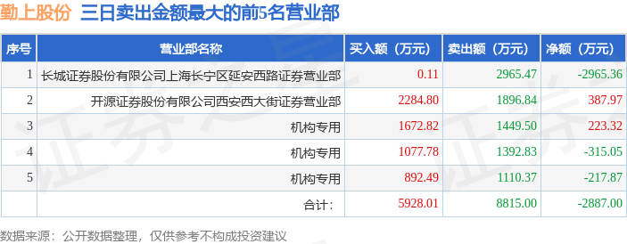 从龙虎榜公布的三日买卖数据来看,机构合计净卖出309.61万元。