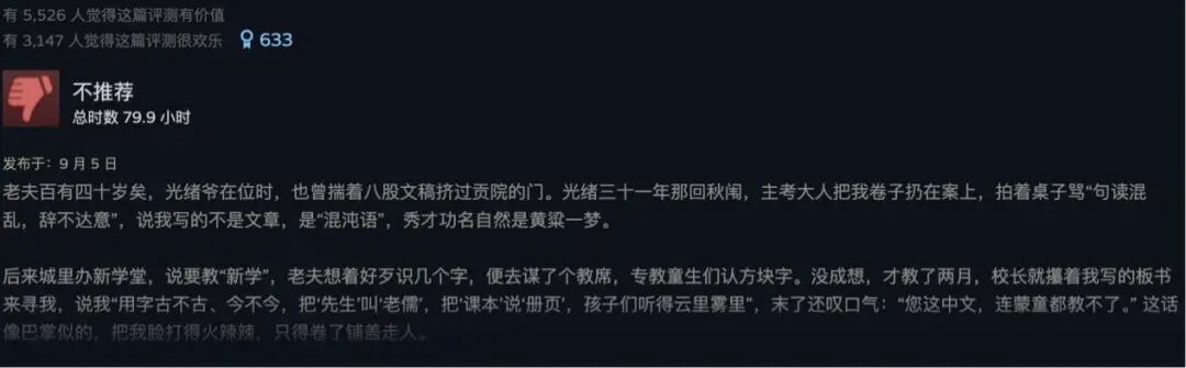 不过因为《蓝途王子》除了英语没有做任何本地化,不是资深玩家真玩不下去。游戏在 Steam 简中区只有 78% 的好评率,或多或少受到了这方面的影响。
