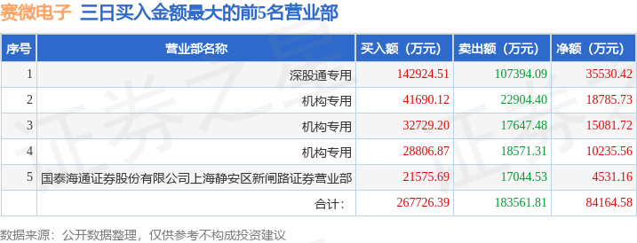 从龙虎榜公布的三日买卖数据来看,机构合计净买入4.41亿元,北向资金合计净买入3.55亿元。上海超短帮等知名游资榜上有名。(知名游资上海超短帮一般指国泰海通证券股份有限公司上海静安区新闸路证券营业部席位、知名游资上海超短帮一般指国泰海通证券股份有限公司上海静安区新闸路证券营业部席位,根据市场资料整理,仅供参考)