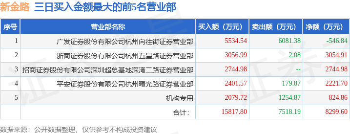 证券之星消息,沪深交易所2025年11月27日公布的交易公开信息显示,新金路(000510)因连续三个交易日内,涨幅偏离值累计达到20%的证券登上龙虎榜。此次是近5个交易日内第1次上榜。