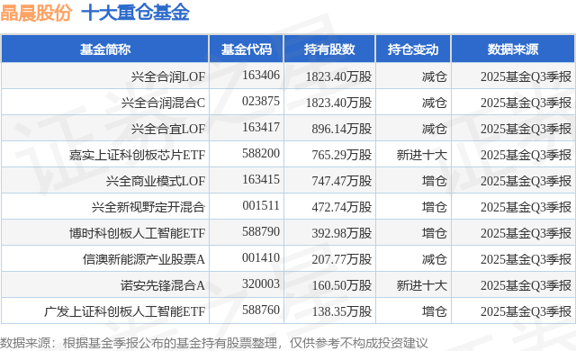 根据2025基金Q3季报公募基金重仓股数据,重仓该股的公募基金共118家,其中持有数量最多的公募基金为兴证全球基金的兴全合润LOF。兴全合润LOF目前规模为249.14亿元,最新净值1.9989(11月26日),较上一交易日上涨1.92%,近一年上涨32.84%。该公募基金现任基金经理为谢治宇。谢治宇在任的基金产品包括:兴全合宜混合(LOF)A,管理时间为2018年1月23日至今,期间收益率为90.34%;兴全社会价值三年持有混合,管理时间为2019年12月26日至今,期间收益率为102.2%;兴全合润混合C,管理时间为2025年4月8日至今,期间收益率为39.57%。