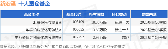 根据2025基金Q3季报公募基金重仓股数据,重仓该股的公募基金共3家,其中持有数量最多的公募基金为汇安基金的汇安多策略混合A。汇安多策略混合A目前规模为0.84亿元,最新净值1.5864(11月25日),较上一交易日上涨1.26%,近一年上涨44.65%。该公募基金现任基金经理为柳预才。柳预才在任的基金产品包括:汇安宜创量化精选混合A,管理时间为2020年12月30日至今,期间收益率为11.92%;汇安中证500增强A,管理时间为2022年12月23日至今,期间收益率为25.37%;汇安多因子混合A,管理时间为2023年5月29日至今,期间收益率为31.61%;