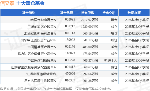 重仓信立泰的前十大公募基金请见下表: