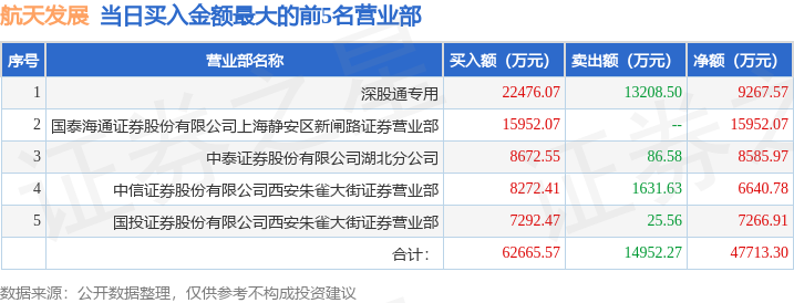 从龙虎榜公布的当日买卖数据来看,北向资金合计净买入9267.57万元。上海超短帮、一瞬流光、方新侠、朱雀大街等知名游资榜上有名。(知名游资上海超短帮一般指国泰海通证券股份有限公司上海静安区新闸路证券营业部席位、知名游资一瞬流光一般指中泰证券股份有限公司湖北分公司席位、知名游资方新侠一般指中信证券股份有限公司西安朱雀大街证券营业部席位、知名游资朱雀大街一般指国投证券股份有限公司西安朱雀大街证券营业部席位,根据市场资料整理,仅供参考)