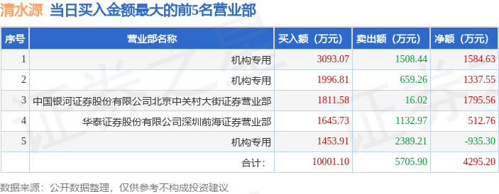 证券之星消息,沪深交易所2025年11月26日公布的交易公开信息显示,清水源(300437)因日换手率达到30%的前5只证券登上龙虎榜。此次是近5个交易日内第3次上榜。