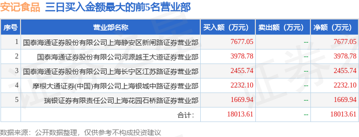 证券之星消息,沪深交易所2025年12月3日公布的交易公开信息显示,安记食品(603696)因非ST、*ST和S证券连续三个交易日内收盘价格涨幅偏离值累计达到20%的证券登上龙虎榜。此次是近5个交易日内第1次上榜。