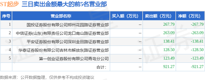 证券之星消息,沪深交易所2025年12月2日公布的交易公开信息显示,ST起步(603557)因ST、*ST证券连续三个交易日内收盘价格涨幅偏离值累计达到12%的证券登上龙虎榜。此次是近5个交易日内第1次上榜。