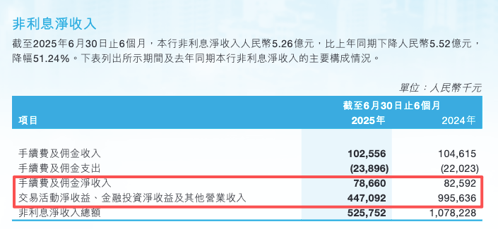 然而,同期该行非息净收入大幅下滑,同比跌幅高达51.24%至5.26亿元,投资收益减少及手续费佣金下滑或是主要原因。
