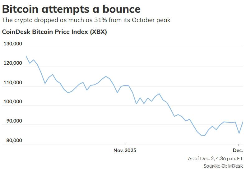 周二,比特币一度大涨逾7%,突破92,000美元,随后回落至约91,000美元附近。尽管如此,比特币仍较10月创下的历史高点下跌约28%。今年加密市场波动激烈,大量新资金在比特币冲向10月6日历史高点12.6万美元过程中不断涌入,加密ETF也因此吸金无数,但随之也出现显著赎回潮。