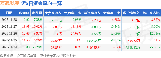 11月28日的资金流向数据方面,主力资金净流出6.12亿元,占总成交额12.98%,游资资金净流入2.2亿元,占总成交额4.66%,散户资金净流入3.92亿元,占总成交额8.32%。