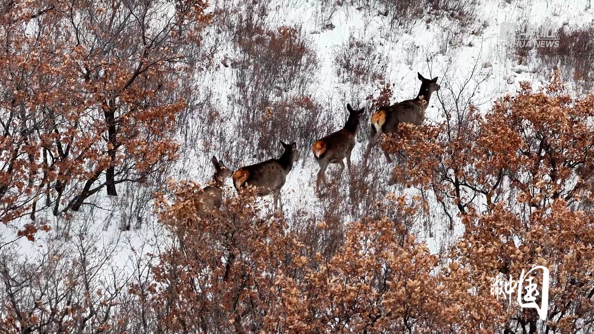 一场新雪落下,内蒙古自治区赤峰市巴林右旗赛罕乌拉国家级自然保护区披上银装。鹿群踏雪而行,时而低头觅食,时而驻足凝望,为寂静的林海雪原增添一抹灵动。