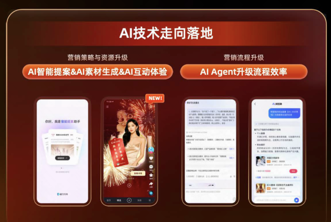 在投前阶段,快手AI智能提案助手就基于行业知识库与品牌历史数据,可在1分钟内生成包含TA洞察、产品策略的完整方案,彻底改变传统“拍脑袋”式策划。在创意生成环节,AIGC技术实现批量生产与个性化定制:系统可学习品牌优质素材特征,自动生成优化建议并一键生成海量素材。