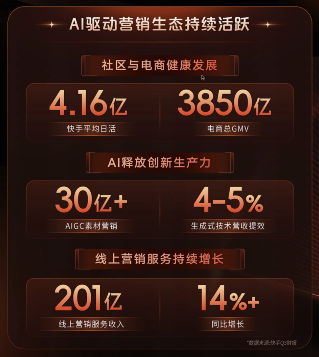 而快手成熟高效的交易链路也承接住了各类用户的需求。2025年三季度快手电商GMV达3850亿元,同比增长15.2%。今年双11期间平台推出的30亿补贴,也推动全域生意爆发。大牌大补百万GMV单品数同比增长超77%,搜索GMV同比增长超33%。从内容种草到下单、使用分享,快手构建了一站式交易闭环,让用户看完即买,品牌种草即转化,短期确收与长期沉淀形成良性循环。