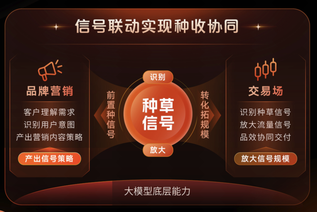 品牌可以在快手通过营销活动触达潜在人群,积累初步的用户兴趣信号,并利用营销科学和大模型能力对这些信号进行深度解析,建立"用户-商品-品牌"的精准匹配关系。最后,将这些信号实时同步给广告和自然交易场,实现从兴趣到购买的过渡。