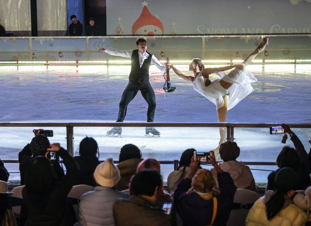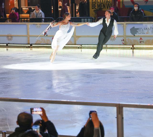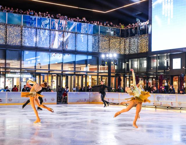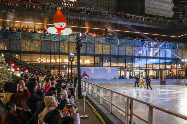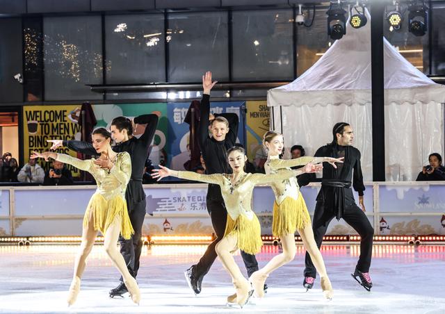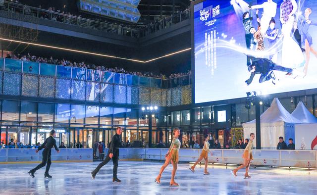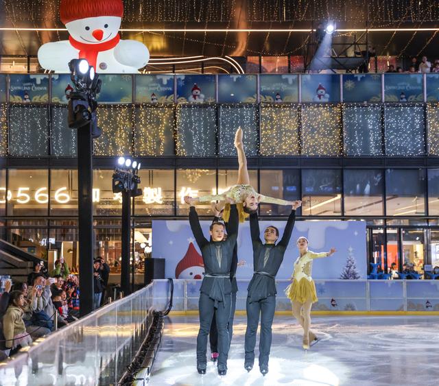 记者在现场看到,陆家嘴中心L+Mall下沉广场变身冰雪舞台,来自欧美及中国的顶级冰舞艺术家,联袂花样滑冰世界奥运选手、冠军名将,共同演绎一场世界级冰舞大秀,织就冬日限定舞台,为浦东区域注入璀璨冬韵。