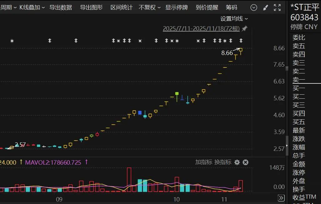 *ST正平9月以来累计26个交易日涨停。其间,该股三度停牌核查。