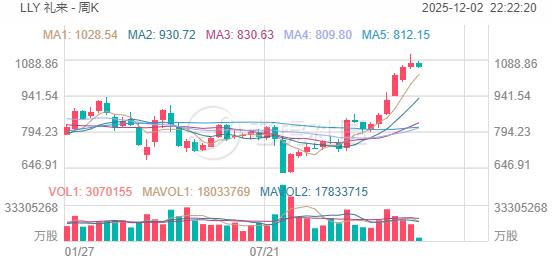 美银看好礼来的核心理由包括:口服GLP-1药物orforglipron上市时间提前至2026年初,新药研发进度超预期;减肥和糖尿病药物Zepbound和Mounjaro保持市场领先地位。该行大幅上调礼来目标价至1,286美元,认为其还有22%上涨空间,重申买入评级。