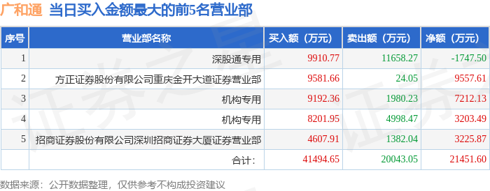 从龙虎榜公布的当日买卖数据来看,机构合计净买入1.04亿元,北向资金合计净卖出1747.5万元。涪陵广场路、上海超短帮、作手新一等知名游资榜上有名。(知名游资涪陵广场路一般指方正证券股份有限公司重庆金开大道证券营业部席位、知名游资上海超短帮一般指国泰海通证券股份有限公司上海静安区新闸路证券营业部席位、知名游资作手新一一般指国泰海通证券股份有限公司南京太平南路证券营业部席位,根据市场资料整理,仅供参考)