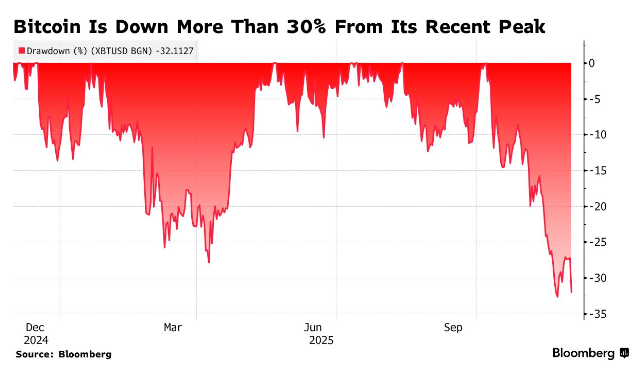 然而,这条原本被视为放大加密货币收益的捷径,如今已成为杠杆、波动性与市场情绪螺旋恶化的警示案例。Strategy股价在11月下跌34%,比特币也从10月高点回落约30%,现徘徊在86000美元附近。周一,Strategy收盘下跌3.25%,盘中一度重挫12%。