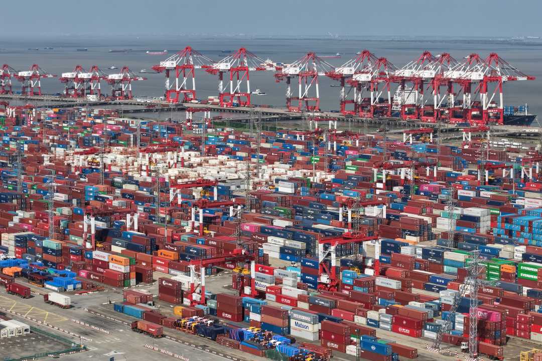 12月8日,上海港集装箱外贸码头作业繁忙。当日,海关总署发布数据显示,2025年11月,我国货物贸易进出口总值3.9万亿元,同比增长4.1%,比上月加快4个百分点。截至11月份,我国货物贸易进出口已连续10个月保持同比增长。