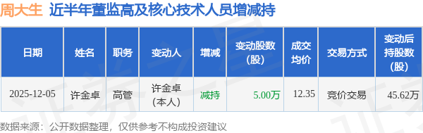 周大生近半年内的董监高及核心技术人员增减持详情如下: