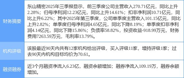 2025年10月24日,中国银河研究员钱德胜,高峰发布了对东山精密的研报《2025年三季报点评:营收稳健增长,布局AI打造新增长极》,该研报对东山精密给出“买入”评级。研报中预计公司2025-2027年实现归母净利润为19/53/64亿元,每股EPS为1.02/2.87/3.47元,对应当前股价PE为67/24/18倍,维持“推荐”评级。证券之星数据中心根据近三年发布的研报数据计算,该研报作者对此股的盈利预测准确度为19.42%。
