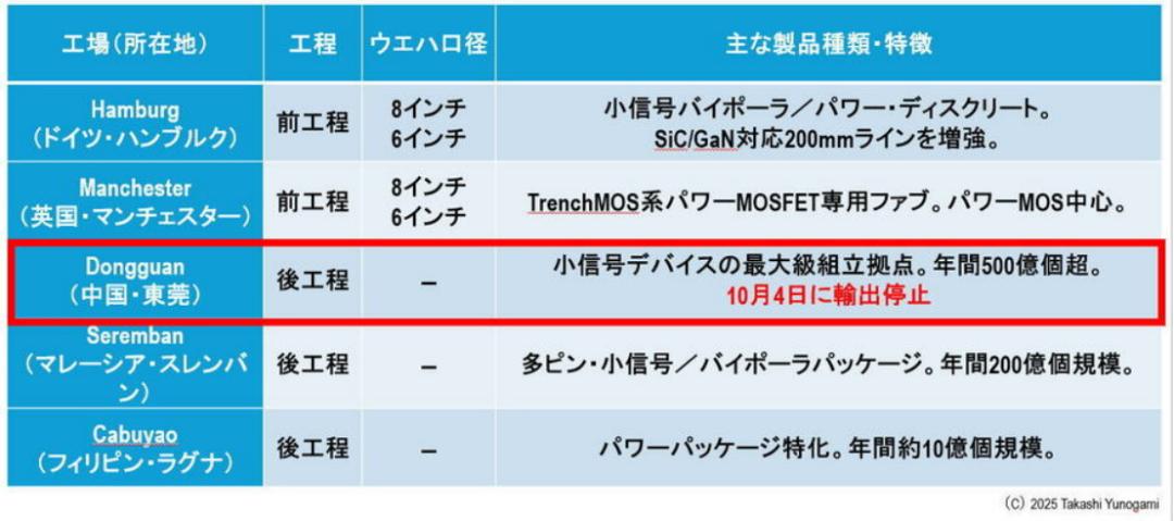 因此,汽车半导体在实际安装到车辆之前,必须经过严格的“生产线认证”,这需要六个月到一年的时间。这清楚地表明,即使是安世半导体的半导体,将生产转移到另一家工厂,即使是在后期阶段,也需要时间重新认证。此外,如果安世半导体将生产外包给其他半导体制造商,认证所需时间可能会更长。安世半导体出货暂停之所以会成为一个如此重大的问题,是因为其他公司很难接手生产。