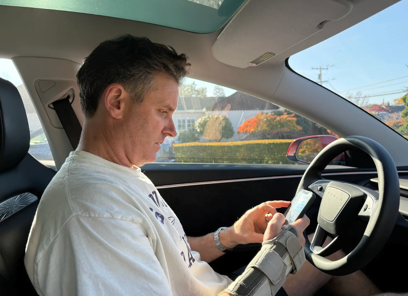 《商业内幕》科技简报栏目的撰稿人艾利斯塔·巴尔(Alistair Barr)决定用他的2024款特斯拉Model 3亲自测试一下,看看这个自动驾驶系统能达到什么程度,在发短信的新场景下表现如何。