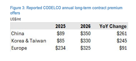 据新闻报道,主要生产商智利国家铜业公司(CODELCO)向主要消费中心报出的年度长单溢价已高达325美元/吨及以上,在亚洲市场尤其呈现出急剧的跳涨。