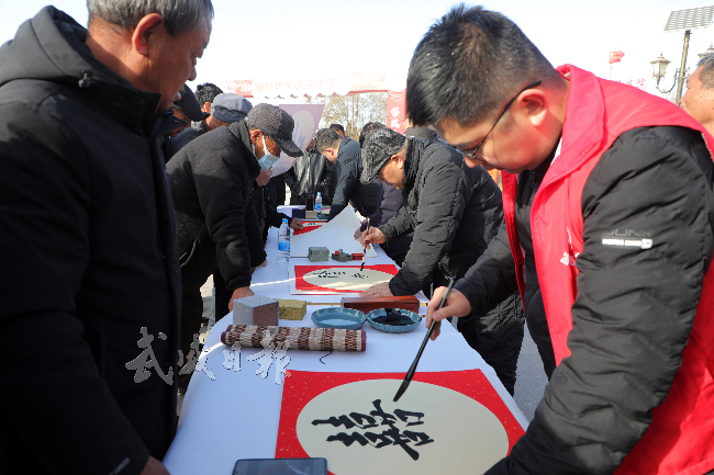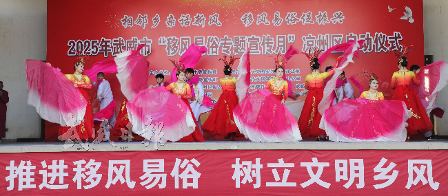 赠送书法作品近日,凉州区组织文旅系统深入基层乡镇,开展赠送书法、非遗展示、文艺演出等活动,为深化移风易俗、弘扬新风正气,焕发乡村文明新气象营造了浓厚氛围。 武威日报记者孙煜东