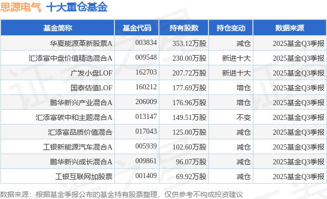 根据2025基金Q3季报公募基金重仓股数据,重仓该股的公募基金共105家,其中持有数量最多的公募基金为华夏基金的华夏能源革新股票A。华夏能源革新股票A目前规模为94.36亿元,最新净值3.177(12月4日),较上一交易日上涨0.6%,近一年上涨30.69%。该公募基金现任基金经理为杨宇。杨宇在任的基金产品包括:华夏新能源车龙头混合发起式A,管理时间为2021年9月15日至今,期间收益率为8.16%;华夏清洁能源龙头混合发起式A,管理时间为2023年8月22日至今,期间收益率为36.99%;