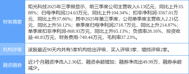 今日炬光科技(688167)涨11.91%,收盘报144.99元。