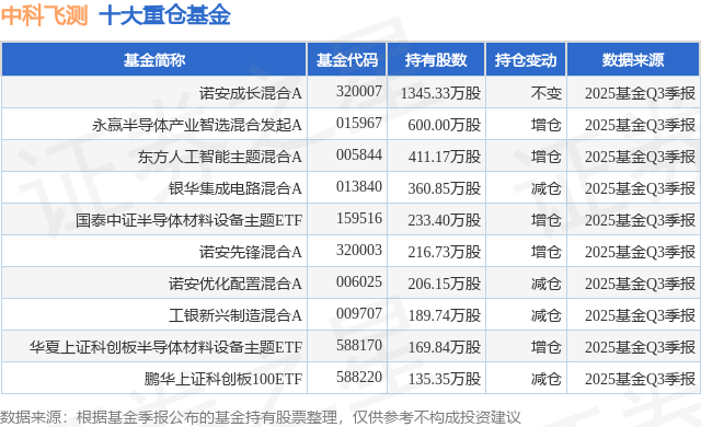 重仓中科飞测的前十大公募基金请见下表:
