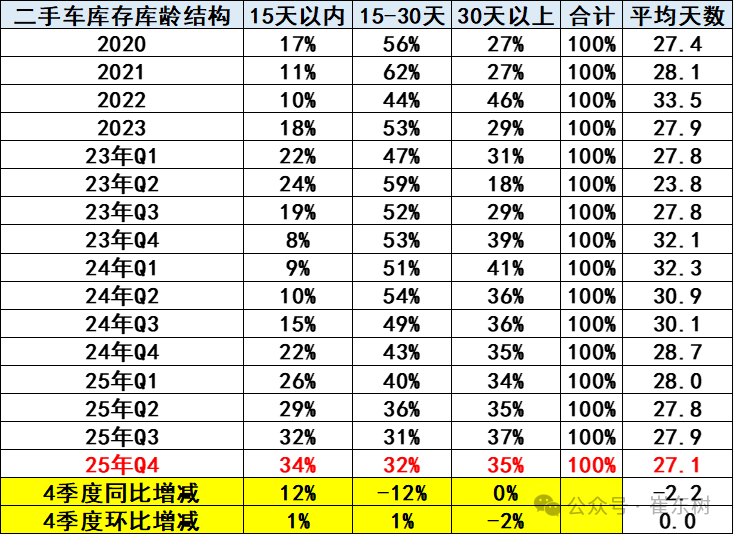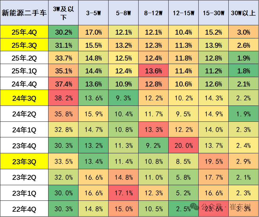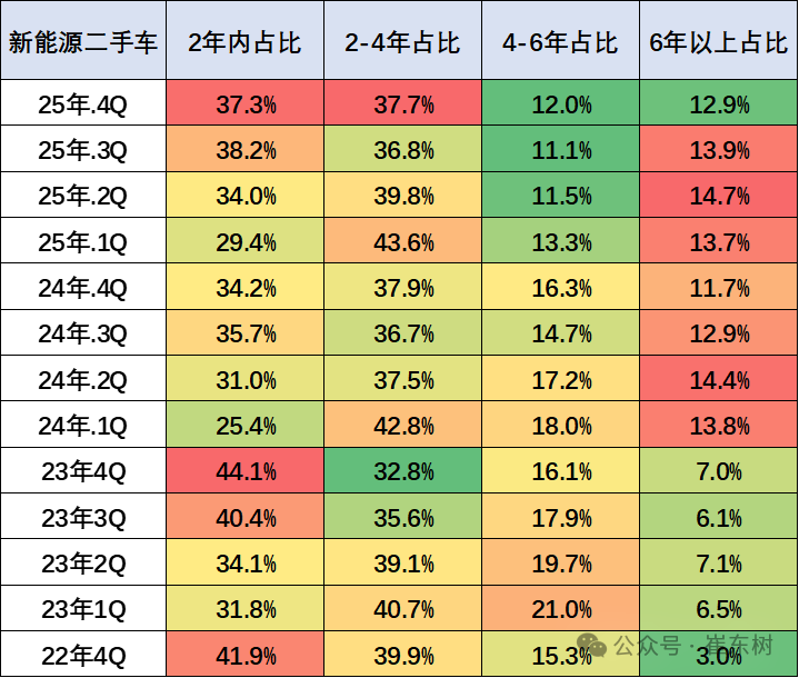 2025年4季度,全国新能源二手车使用年限在2年以下的占比37.3%,较去年同期大幅提升。