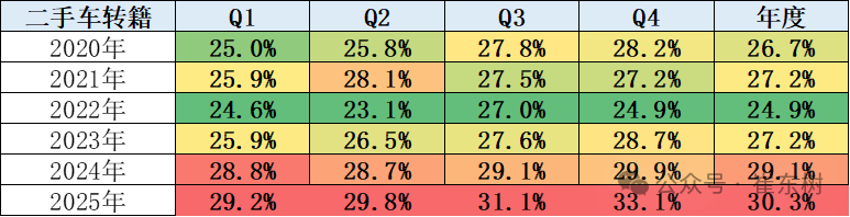 二手车的转籍比例在25到30%之间波动的趋势,2025年10月达到33.1%的当期历史高位。目前来看,由于二手车转籍便利提升,二手车转籍的比例回升到了较高的水平。