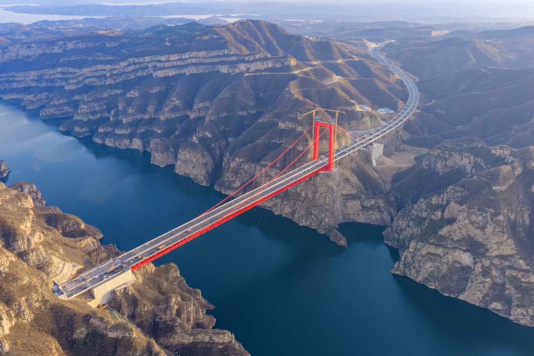 12月5日,河南济新高速公路黄河三峡大桥进行通车前荷载试验。黄河三峡大桥为世界首创地锚式回转缆悬索桥、河南跨径最大桥梁,是济(源)新(安)高速控制性工程,预计12月底建成通车。