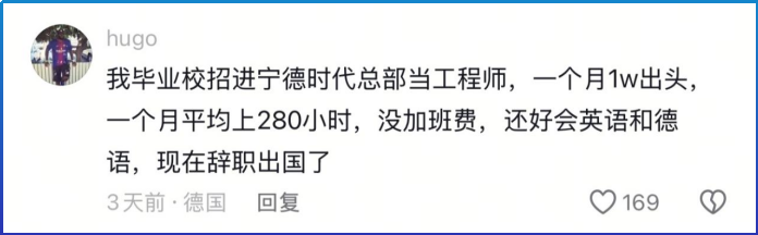 今年宁德时代的业绩非常好,前三季度营收逼近3000亿,净利润高达490亿,同比增长36.2%。这是员工和老板曾毓群一起创造的增长,什么大干一百天,什么896工作制都不重要。大家的辛苦曾老板看到了!
