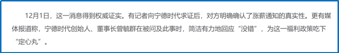 更关键的是,这项制度还是明年1月1日开始执行。以强有力的激励,再搭配上宁德时代春节出勤一天奖励200块钱的政策,彻底给年底有心思跳槽的员工吃下了定心丸。实际上媒体们也是这么报道的。