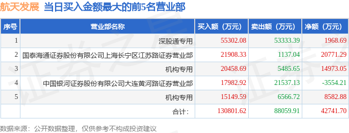 从龙虎榜公布的当日买卖数据来看,机构合计净买入2.36亿元,北向资金合计净买入1968.69万元。章盟主、陈小群等知名游资榜上有名。(知名游资章盟主一般指国泰海通证券股份有限公司上海长宁区江苏路证券营业部席位、知名游资陈小群一般指中国银河证券股份有限公司大连黄河路证券营业部席位、知名游资陈小群一般指中国银河证券股份有限公司大连黄河路证券营业部席位,根据市场资料整理,仅供参考)