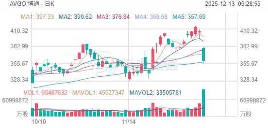 周五,博通成为华尔街关注焦点。这家横跨软件与半导体领域的科技巨头在公布最新财报及业绩指引后,获得多家投行的高度评价。不过,尽管财报发布后一度走高,因部分投资者担忧公司未来可能面临利润率承压,博通股价随后回吐涨幅。截至收盘,该股大跌超11%,报359.93美元。