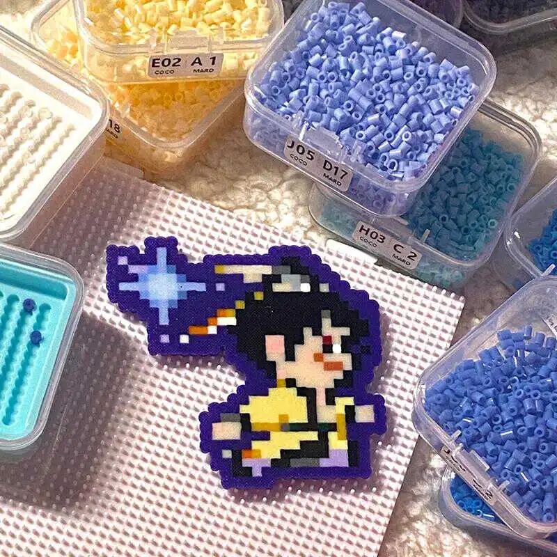 对Tina来说,拼豆无异于成年人的低配版十字绣。相比于其他需要投入长时间高精力的爱好,拼豆的门槛并不高,只需要一包豆子、一把经典镊子、一个底盘。