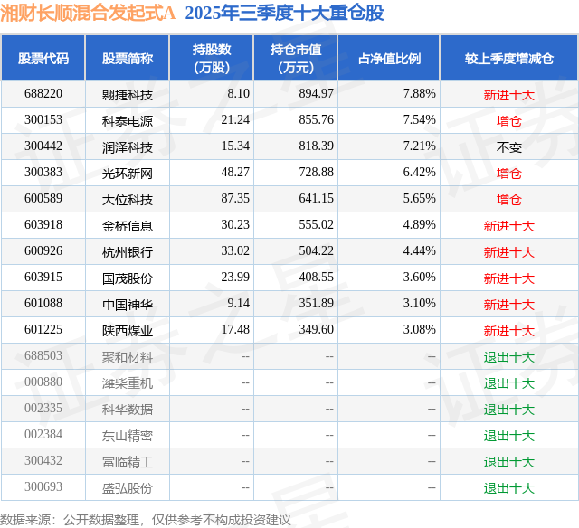 湘财长顺混合发起式A的前十大重仓股如下: