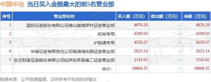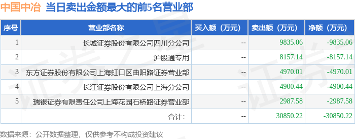 证券之星消息,沪深交易所2025年12月9日公布的交易公开信息显示,中国中冶(601618)因有价格涨跌幅限制的日收盘价格跌幅偏离值达到7%的前五只证券登上龙虎榜。此次是近5个交易日内第1次上榜。