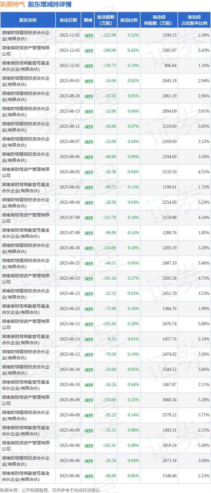 该股近半年内有股东持股变动,合计净减持2715.1万股,股东增减持明细如下表: