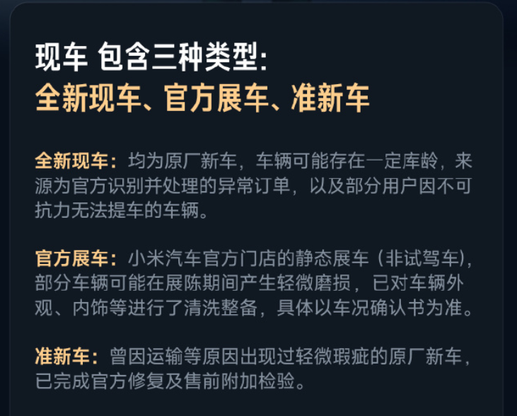 值得注意的是,近期小米汽车还因开放“现车选购”,而被外界猜测汽车新增订单已经不复昔日火爆。据官方称,小米汽车现车包含全新车、官方展车、准新车。12月1日12点,已锁单未交付用户可优先改配同车型现车。12月3日10点,现车选购面向全部用户开放。