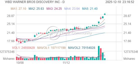 消息面上,12月5日,华纳兄弟探索宣布,全球领先的流媒体平台奈飞(NFLX.US)已同意以827亿美元(含债务)的价格收购其流媒体和制片厂资产。三天后,派拉蒙天舞(PSKY.US)对华纳兄弟发起敌意收购,收购要约对华纳兄弟的估值高达1084亿美元。不管谁成功,交易均需获得监管部门的批准。