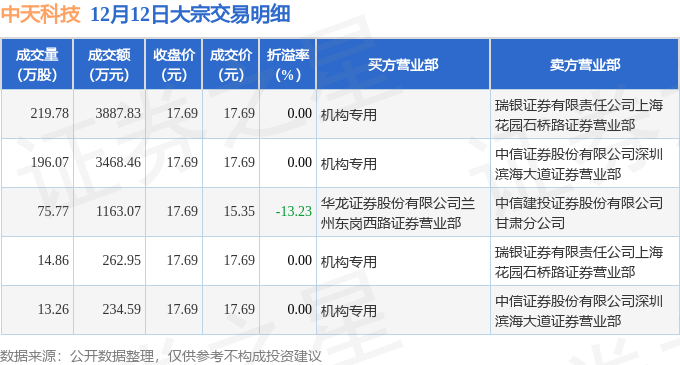 证券之星消息,12月12日中天科技发生大宗交易,交易数据如下:
