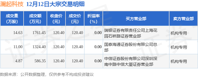 证券之星消息,12月12日澜起科技发生大宗交易,交易数据如下:
