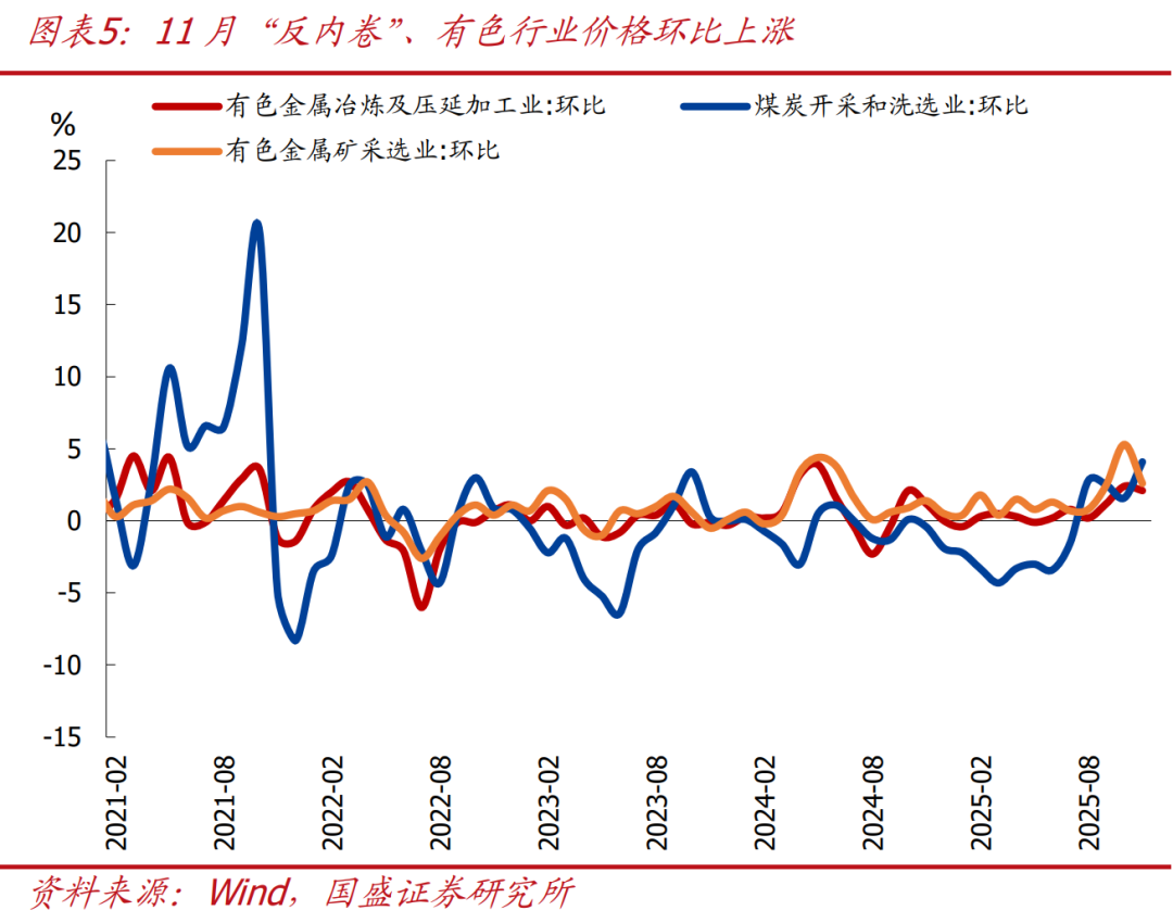 >PPI:“反内卷”带动煤炭、黑色价格上涨,光伏设备、锂离子电池、新能源车价格同比降幅收窄;国际金价、铜价上涨,带动有色行业价格上涨,一般日用品和耐用消费品价格也上涨。此外,国际油价继续下行,带动原油-石化产业链价格续跌。