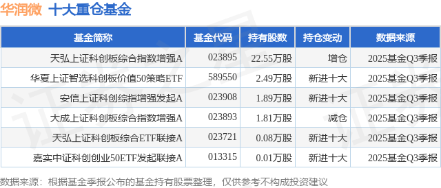 重仓华润微的公募基金请见下表: